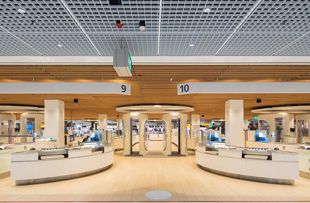 金博宝捕鱼台宿提供智能安全通道金博宝捕鱼Daifuku设计曲线道形状, 允许多人同时准备筛检并用RFID自动排序从扫描机穿入检索道和附加筛选道的行李