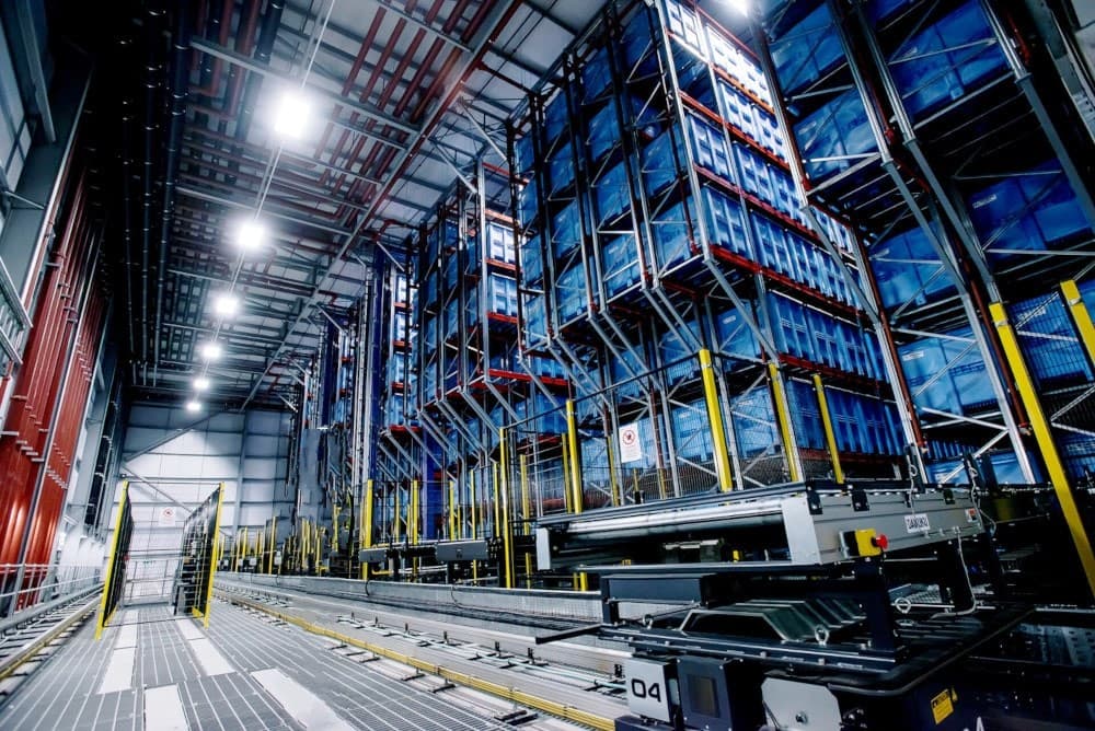 战略自动化缓冲区(完成货缓冲、原材料/包装材料缓冲、工作处理和使用点管理器)使用的所有实例中,自动存储检索系统居中心位置,允许工厂以安全及时方式高效处理材料