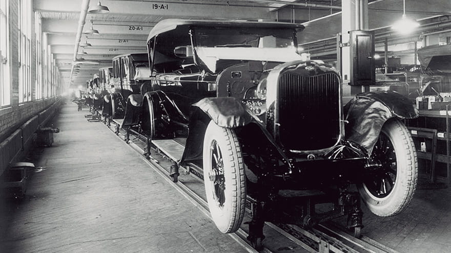 北美汽车产业早期JervisB188金宝搏手机网页版Webb公司成员Daifuku集团向汽车制造商提供链式传送器