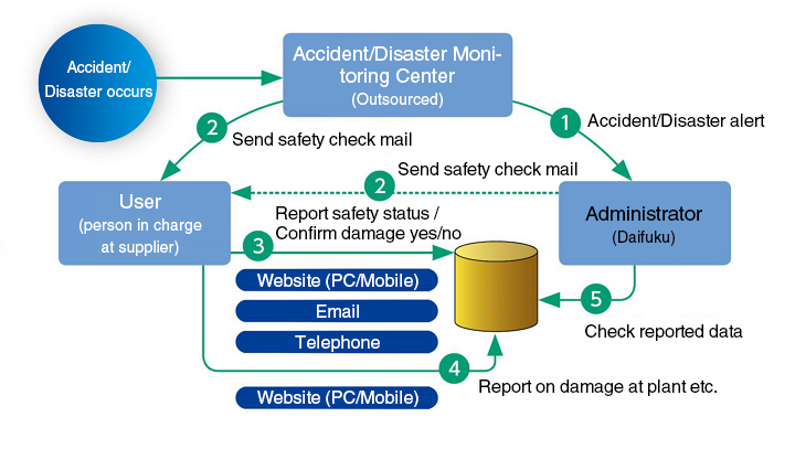 为了确保在发生灾难时稳定采购零件和其他用品,我们引进了供应商操作验证系统,以便能够快速收集供应商受损信息遇有紧急情况时,这个系统通过电子邮件确认供应商的损坏状态和人员安全性,从而使整个供应链能及时恢复并恢复正常业务定期培训供应商提高操作能力,遇有紧急情况时使用系统确认操作可行性和零件交付日期
