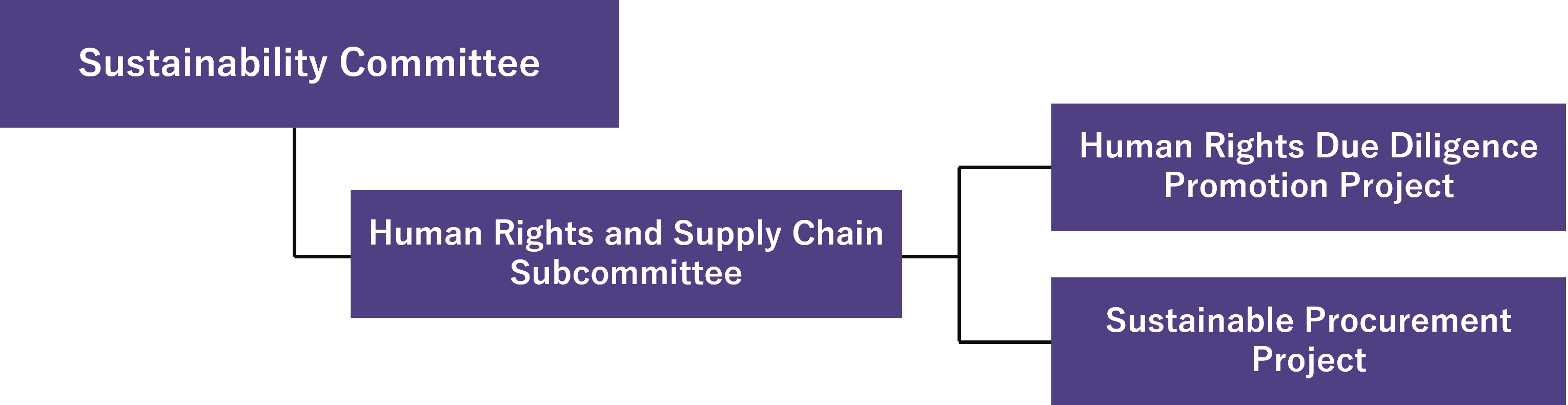 我们推广供应链管理举措,重点是企业函数和商业分支中参与采购的雇员关于供应链中的尽责问题,我们已经在可持续性委员会的管辖下设立了人权和供应链小组委员会。本小组委员会成员来自多个司,包括采购司、人事司、法律事务司和可持续性司,为公司社会责任采购制定内部政策和框架,并确保其可靠实施2022财政年度,小组委员会启动人权克尽职责推广项目,以在整个集团中推广人权克尽职责,可持续采购项目为可持续采购制定指南和框架2023财团中,我们新建生产创新司监督并管理供应链,我们正在企业和企业分支中工作以建立系统