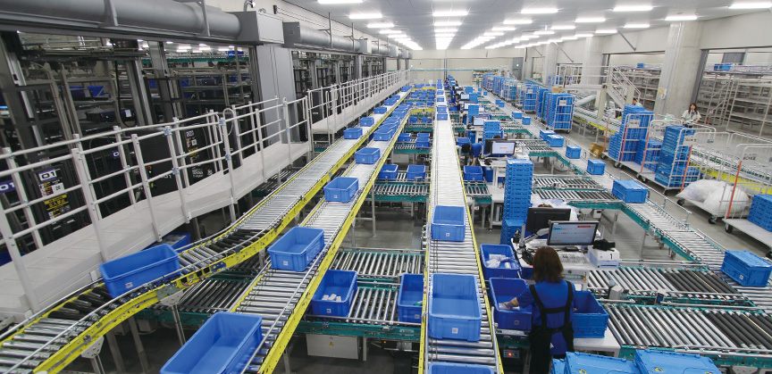 金博宝捕鱼大福提供物流系统满足客户几乎所有领域的实际需求大规模分发中心TBC Saitama(代理名称)Tho药厂大批量处理系统设计主题不单高效处理小批量批量的大量项目,还引进机器人减少人工输入量,因为今后几年劳动力越来越稀疏。金博宝捕鱼大福协同客户开发并交付使用机器人的最新物流系统由机器人选择案例,除某些例外外,从交付到分发中心至发货均实现100%自动化金博宝捕鱼台福超出此成绩使用机器人从大数项提取块件,前曾认为这一步太难金博宝捕鱼台福综合计算机系统与各种自动化存储检索系统(AS/RSs)与相同规模分发中心相比,人员数目减少了一半,生产率翻番,货运精度达9999999%的最高水平,即7-9