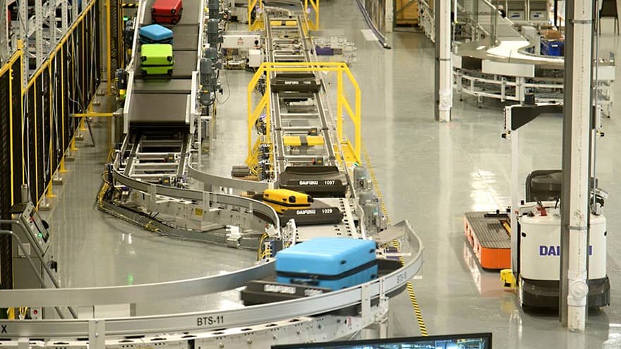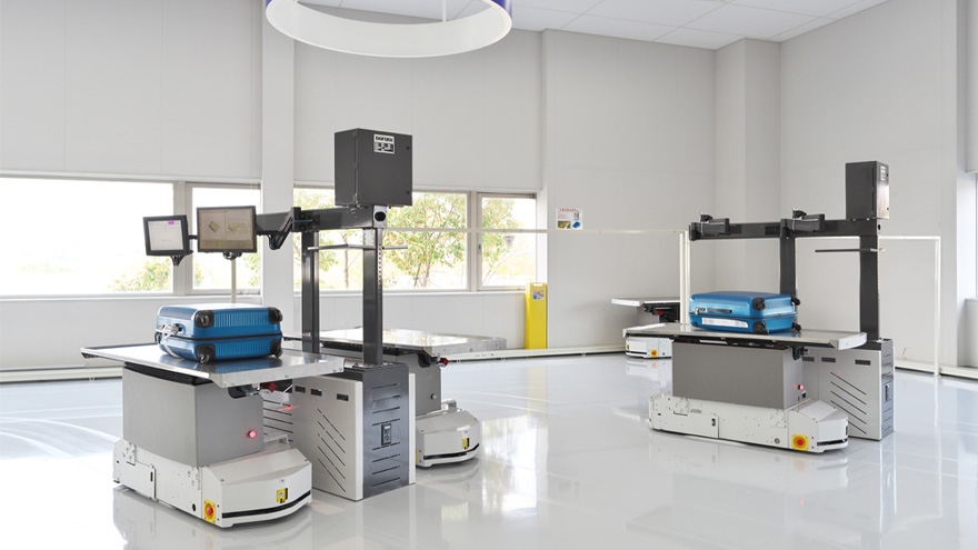 米国の空港で追加検査が必要となった手荷物を空港スタッフの代わりに検査ステーションまで搬送し、検査台としての役割を果たす無人搬送車式手荷物検査台「MIT」。その技術や導入による効果について、当社グループ会社であるJervis B.188金宝搏手机网页版Webb公司