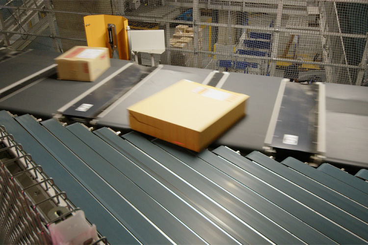 小さな荷物は1ベルトで、大きな荷物は2ベルトで搬送される