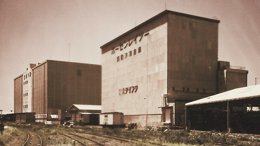1973年、冷凍食品の需要拡大に伴い第1号の冷凍自動倉庫を納入。庫内温度がマイナス40℃の低温環境下における荷役作業の自動化を実現しました。