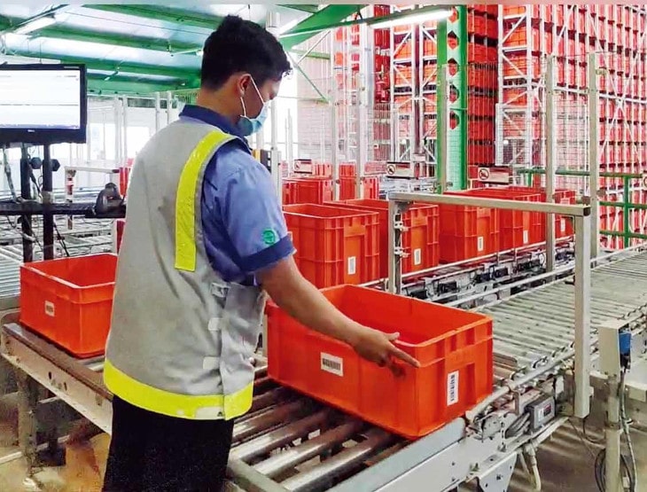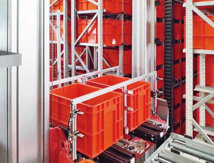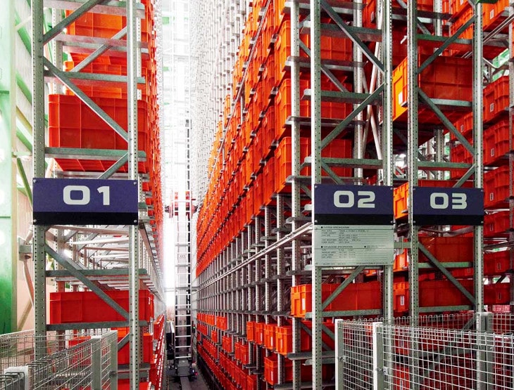 ピッキングが済んだコンテナは自動倉庫に戻される。