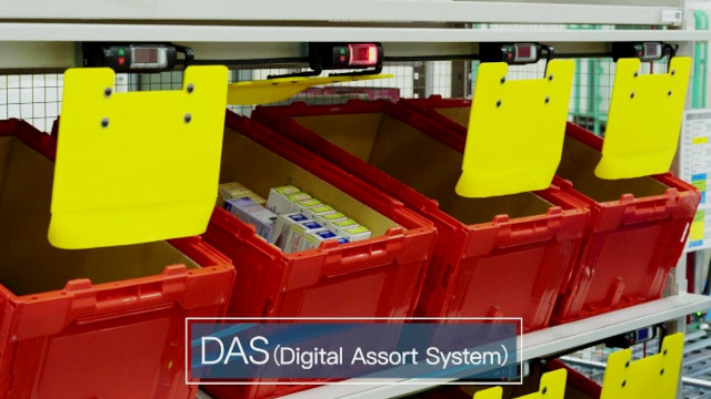 バッチピッキングした商品を、シャトルラックMに一時保管。デジタルアソートシステムでオーダー別に仕分け、荷揃えします。