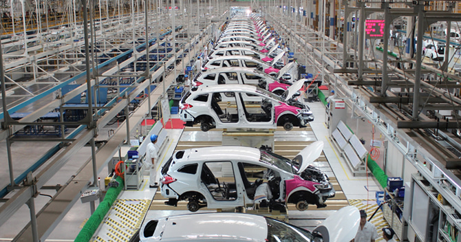 自動車生産ライン向けシステムにおいて1世紀近くの実績を持つダイフクグループ。プレス・溶接・塗装・組立、部品の保管・供給、エンジンテストに至るまで、その全域にわたって自動化・省人化システムを供給しています。地球規模で展開されるエコカーや現地志向のナショナルカーなどグローバルに広がるモータリゼーションを、自動車生産に寄与する最先端の物流技術・ソリューションで支えています。
