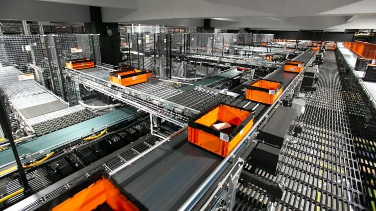 从工具制造商运来的货物接受检验,小件使用点对点数字分解系统排序,然后储存在小型载荷AS/RS或传统机架中小项目批量选择而不管后勤通道采摘产品按顺序排序并存储于多轮式轮机RackM程序整理站按序合并,暂时存储回总机拉克M后再由物流通道检索188金宝搏手机网页版由快递公司交付的产品打包,其余订单用折叠容器连同大件一起发运
