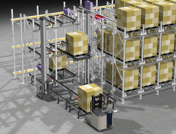 自动化存储和检索使叉车操作量大为减少,因为叉车操作符不再需要绕仓库轮转小盘或寻找产品