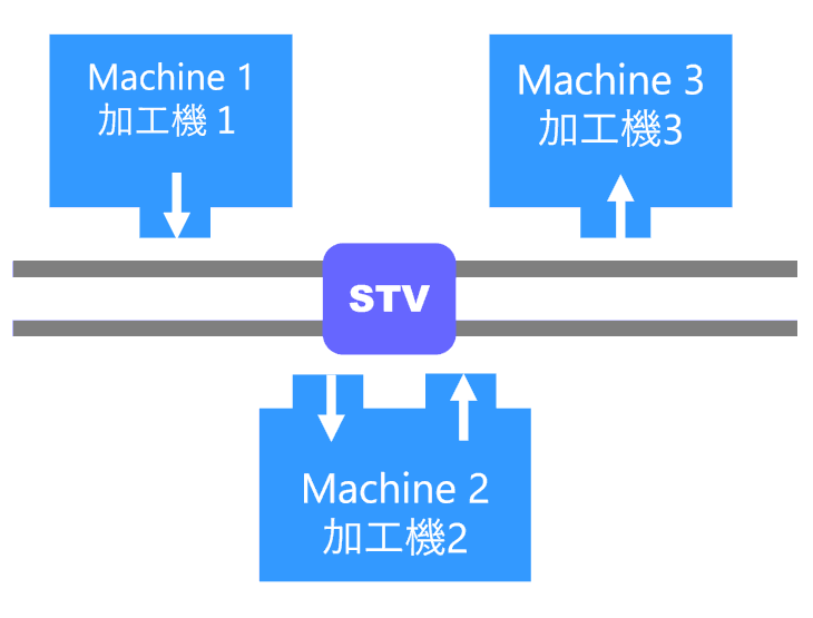 由STV系统驱动的车托盘轨迹,确保畅通稳定的货物运输此外,除单班轮系统外,维护工作可在系统运行期间进行。