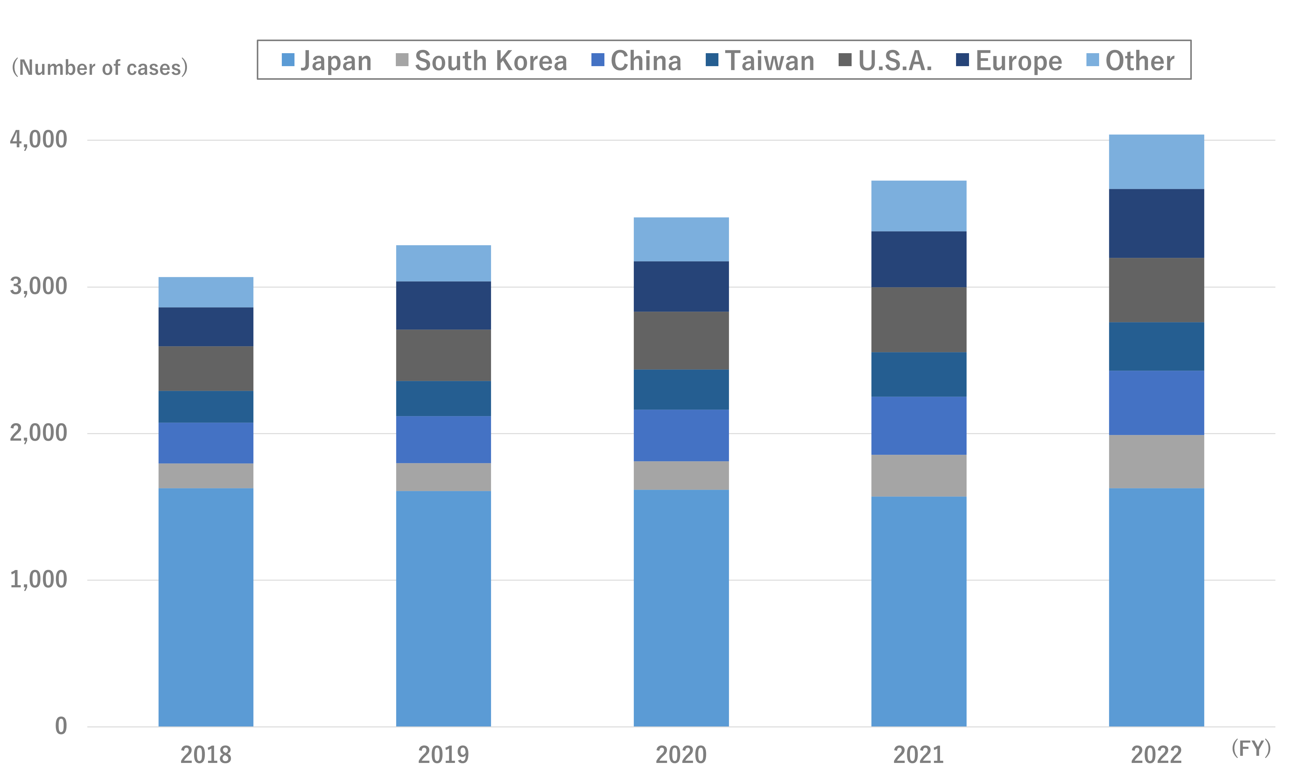 研发支出达1040亿日元,数字变换相关投资达52亿日元,从而实现我们的目标因海外申请量增加而实现并超出目标大幅度注册专利数,特别是在欧洲目标2023修改后从4000项提高至4100项